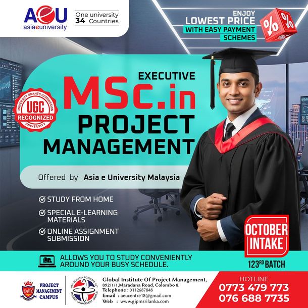 MSc in Project Management enrolments are now on for the 123st Batch. Commencement on 13th October 2025.